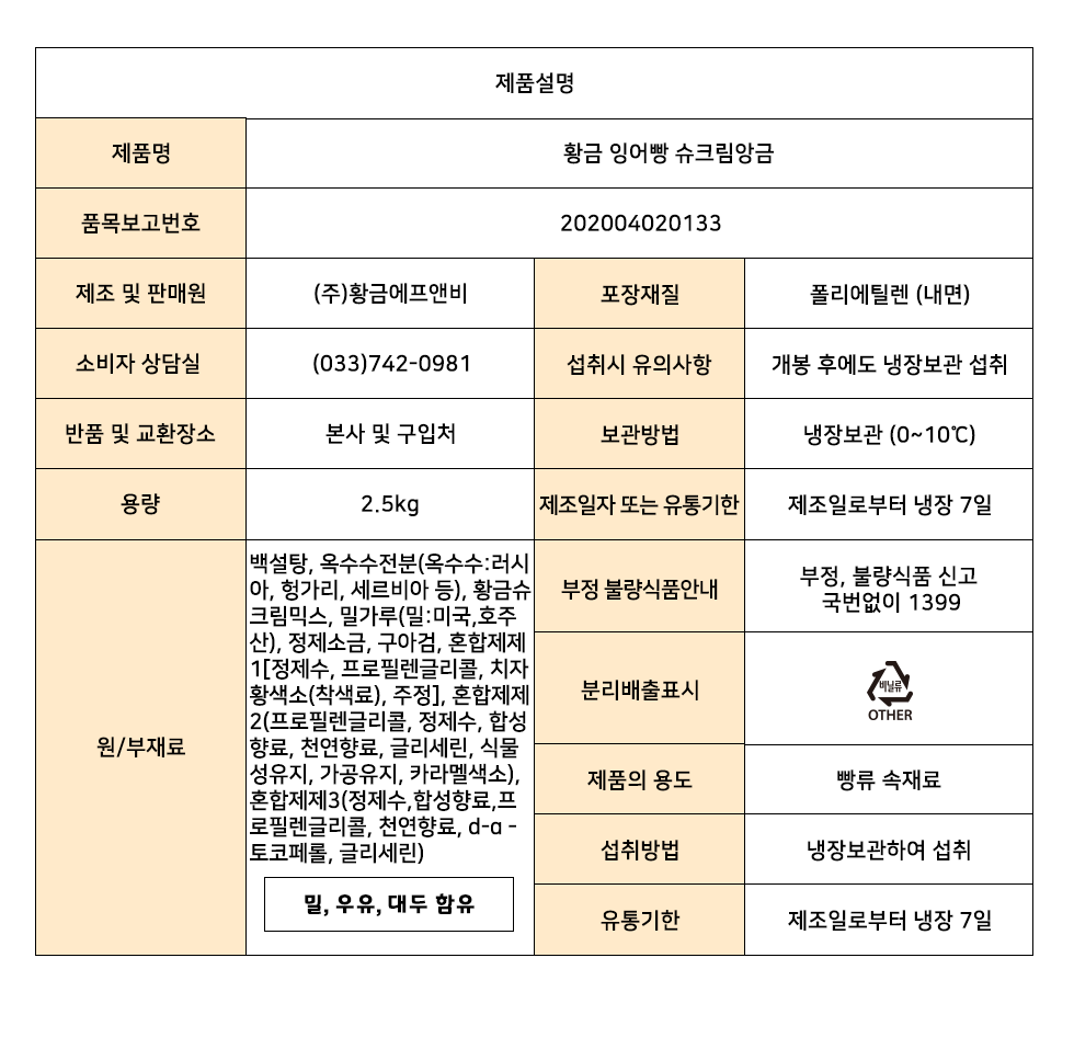 황금잉어빵 슈크림앙금